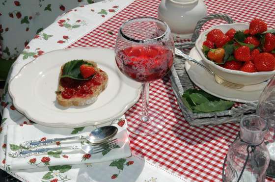 Kolekce Strawberry Garden ubrusy, naprony, běhouny, chňapky, kuchyňské zástěry, povlaky na polštáře, utěrky, kuchyňské ručníky, . . .